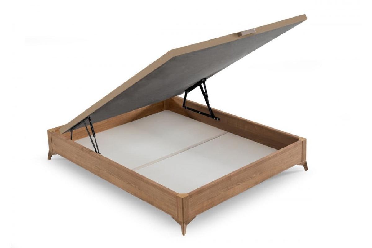 Base que combina un soporte firme para el colchón con un arcón de almacenamiento inferior, accesible levantando la tapa.